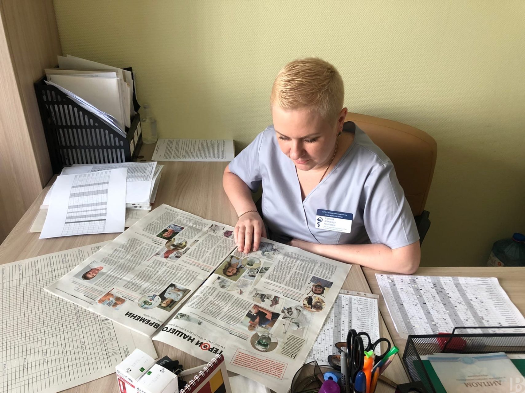 В пятничном номере газеты “Рязанские ведомости” целый газетный разворот посвящен предстоящему Дню медицинского работника, который в этом году отмечается 21 июня. Героями статьи стали врачи и медсестры, работающие в “красной” зоне рязанских больниц. Это Константин Труфанова и Татьяна Осипова из областной клинической больницы, Елена Юневич и Александра Королева из больницы скорой медицинской помощи, Кристина Тяпкина из больницы имени Н.А. Семашко и Светлана Шилина из детского отделения больницы N 11.