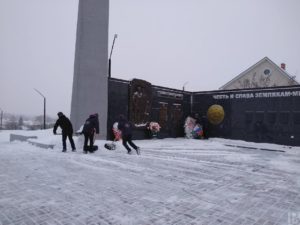 Сегодня утром активисты детских общественных объединений Михайловского района чистили от снега воинские мемориалы, обелиски и памятники. Школьники села Грязное очистили Братскую могилу и в поселке Ильич – территорию возле сельского памятника.