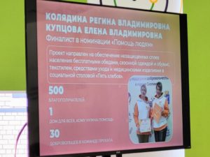 Третий проект, ставший финалистом международной премии – о создании социальной столовой в городе Скопине. Его представили Регина Колядина и Елена Купцова. Проект направлен обеспечение бесплатными обедами незащищённых слоёв населения.