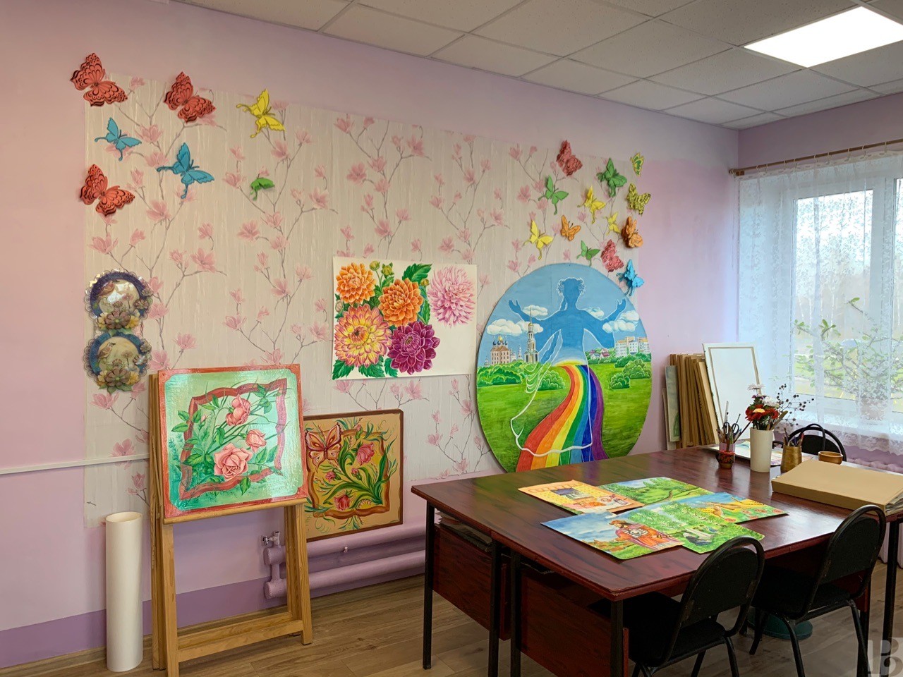 В двухэтажном здании площадью 1800 кв. м оборудованы зрительный зал на 350 человек, библиотека, спортзал, 11 рабочих кабинетов, хореографический и танцевальный залы, детская игровая комната.