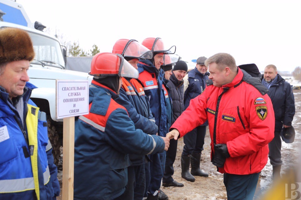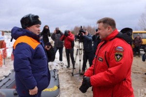 После приземления на площадке губернатор опробовал в деле снегоболотоход, спасатели продемонстрировали технику спасения людей на льду, специалисты показали, как минируют лед для ускорения прохождения ледохода.