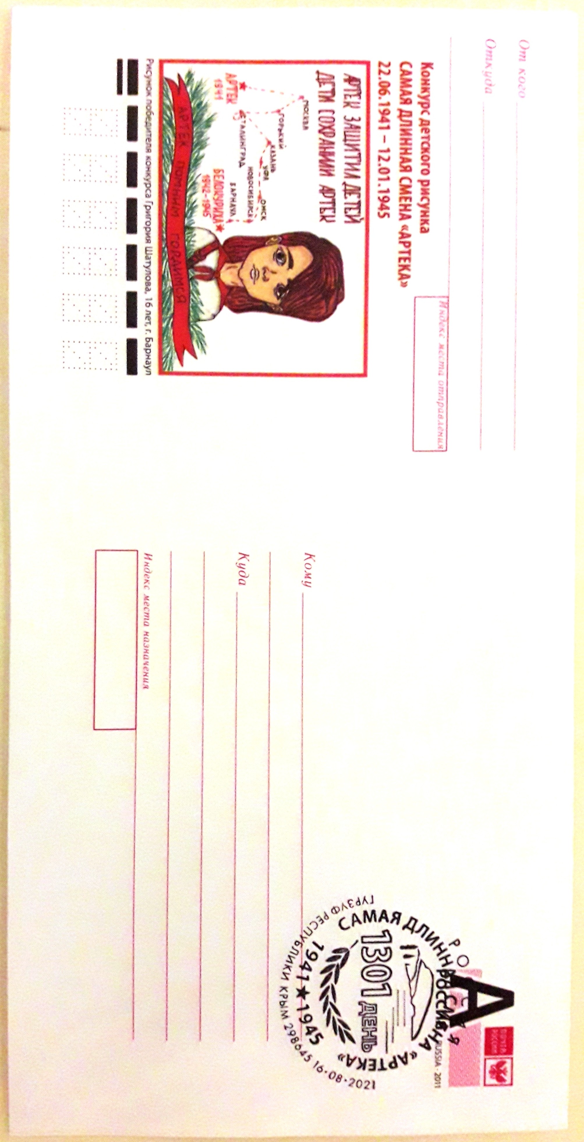 Они привезли в Музей истории молодежного движения подарки для пополнения фондов и использования в экспозиции выставки, посвященной 100-летию пионерии, которая пройдет в 2022 году. Среди них выпущенный недавно конверт, посвященный самой длинной смене «Артека», когда прибывшие на отдых дети из западных областей Украины, Белоруссии, Молдавии, республик Прибалтики, оккупированных фашистскими захватчиками в начале Великой Отечественной войны, были вывезены из лагеря и в течение трех с половиной лет продолжали артековскую смену по маршруту в далекий тыл протяженностью в 7 750 километров, завершив его в Белокурихе. При этом флаг лагерной смены ребята взяли с собой. Только 12 января 1945 года в алтайском «Артеке» торжественно спустили флаг. Так завершилась самая долгая и тяжелая смена в истории лагеря.