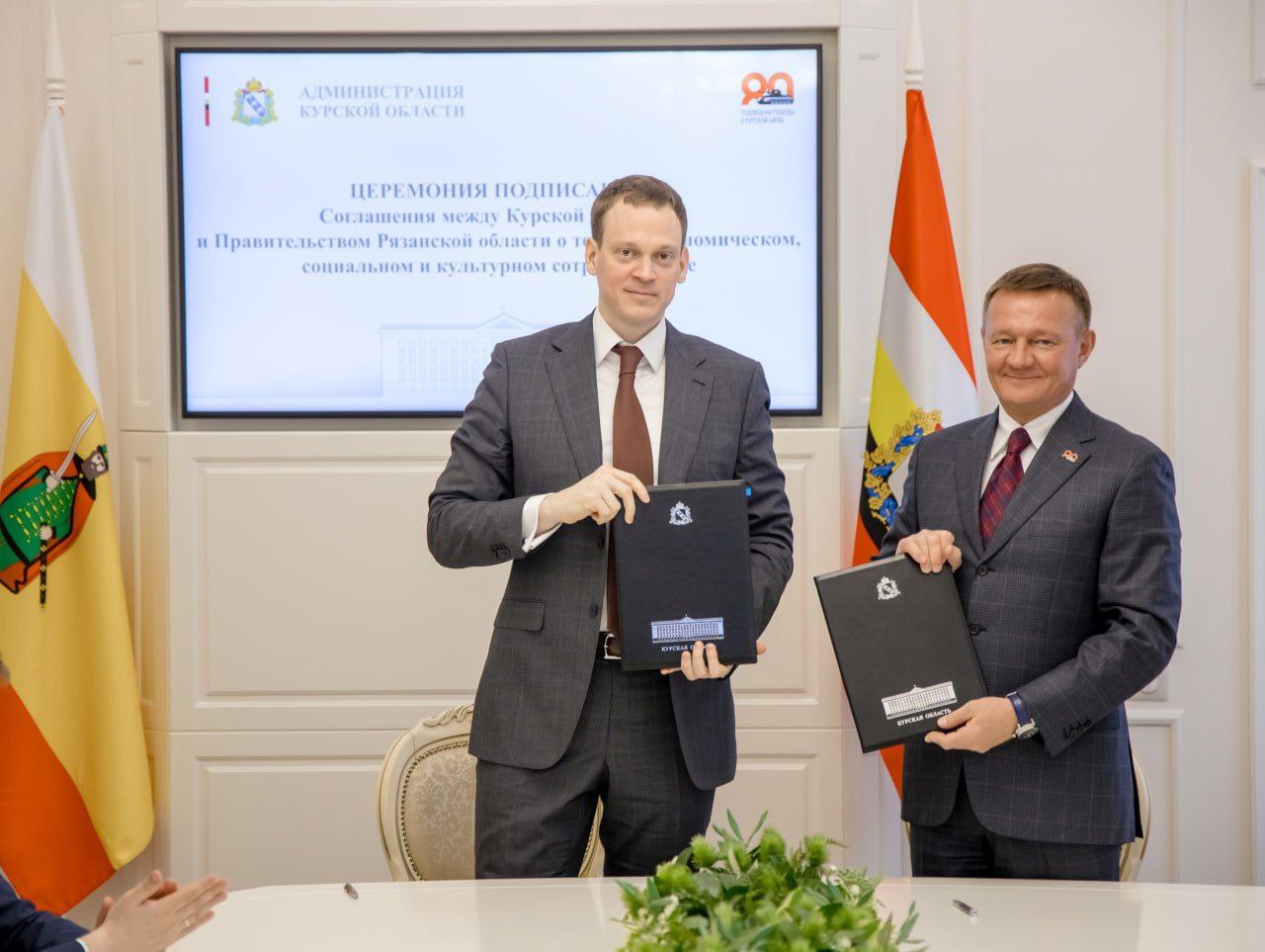 О работе рязанской делегации в Курской области сообщил своим подписчикам в соцсети глава региона Павел Малков. «Сегодня вместе с коллегами работаем в Курске, встретились с губернатором Романом Владимировичем Старовойтом, – написал Малков. – У наших регионов много общего. Особенно похожи проблемы региона на старте работы команды. Интересны новации наших коллег в дорожном строительстве, развитии инфраструктуры, здравоохранении, социальной сфере, реализации нацпроектов. Будем всё это брать на вооружение и делиться своими практиками — в условиях санкций межрегиональное сотрудничество особенно актуально», – написал губернатор. Он сообщил, что было подписано соглашение о расширении сотрудничества с Курской областью и намечен план мероприятий на ближайшие 5 лет. «Будем тесно взаимодействовать с коллегами из Курска в вопросах развития промышленности, сельского хозяйства, культуры», – сообщил Павел Малков. Он отметил, что была достигнута договоренность об обмене опытом между домом-музеем Сергея Есенина и усадьбой Афанасия Фета. «Получено приглашение поучаствовать в знаменитой на весь мир Курской Коренской ярмарке. Уверен, нашим предприятиям есть, что показать и предложить курянам и жителям соседних регионов», – сообщил Малков.