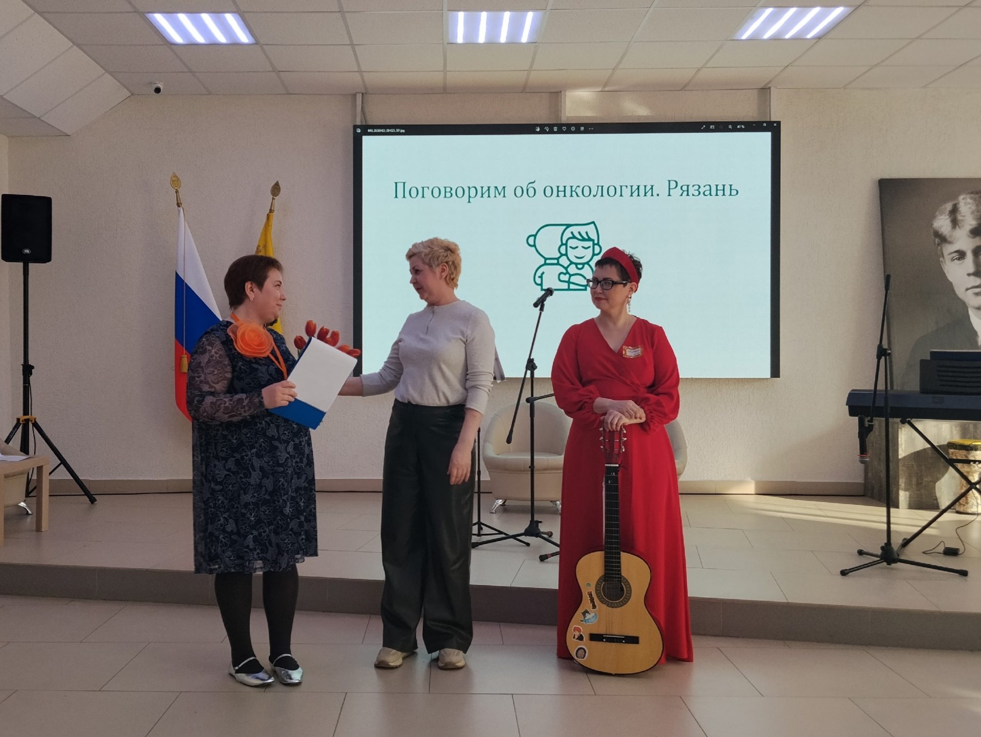 Недавно в городской библиотеке имени Сергея Есенина состоялось торжество, приуроченное к первой годовщине создания рязанского сообщества пациентов «Поговорим об онкологии». Сегодня оно объединяет десятки рязанцев, которых так или иначе касается тема онкозаболеваний. Это пациенты, их родственники, врачи, психологи, равные консультанты, представители профильных фондов.