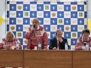 Возглавляла делегацию Галина Евгеньевна Горохова. Она – президент Российского союза спортсменов, трехкратная олимпийская чемпионка по фехтованию, двукратный призер Олимпийских игр, девятикратная чемпионка мира, двадцати двукратная чемпионка СССР, заслуженный мастер спорта СССР, заслуженный тренер СССР и России, двукратный лауреат Национальной спортивной премии: в номинации «За заслуги в спорте» и в номинации «Эпоха в спорте», награждена медалями «За трудовое отличие», «За трудовую доблесть», орденом Трудового Красного Знамени, орденом «За заслуги перед Отечеством» IV степени, орденом «За заслуги перед Отечеством» III (2019 год, за большой вклад в развитие физической культуры и спорта, многолетнюю добросовестную работу);