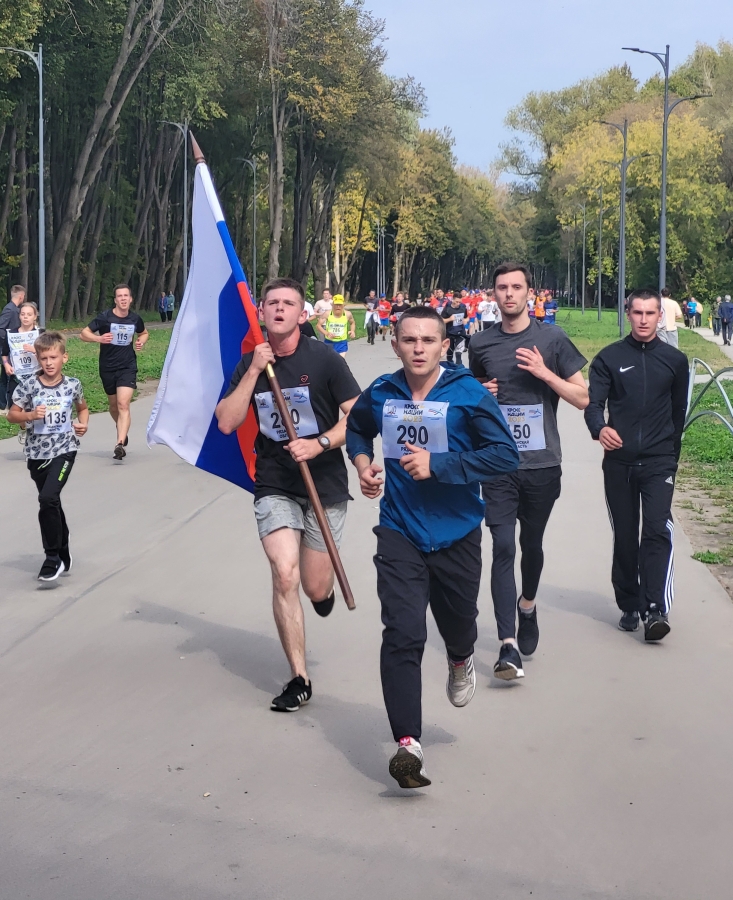 Молодой человек, пробежавший 4 километра с флагом России в руках, призёром не стал, но привлёк к себе внимание многочисленных болельщиков. Он пожелал остаться неизвестным, хотя знакомые и друзья его наверняка узнают. Вот он, герой «Кросса нации-2023», человек, любящий жизнь и свою страну