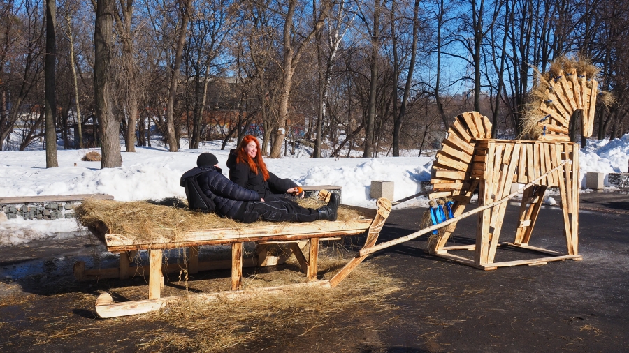 Проводы Масленицы прошли в рязанском ЦПКиО. Возле Зеленого театра построили игровой городок. Здесь можно было увидеть скульптуры из сена, полакомиться блинами и шашлыками, прокатиться на собачьей упряжке, сделать симпатичные селфи.
