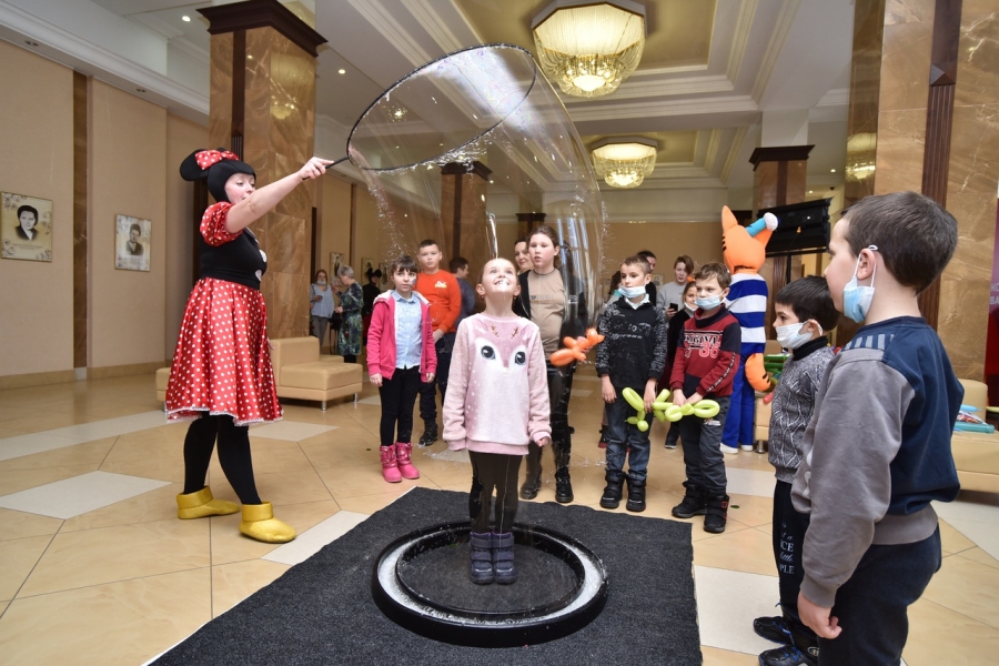 Праздничный концерт к 8 марта подарили женщинам и детям из Луганской и Донецкой народных республик в областной филармонии. В фойе для детей подготовили анимационную программу, аттракционы и конкурсы.