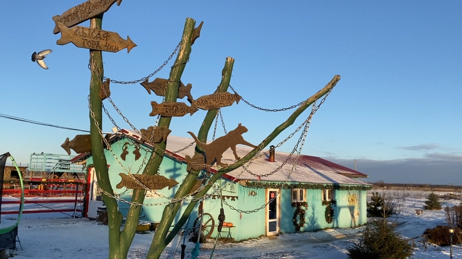 Построили ее в полутора километрах от села Агро-Пустынь, превратив неудобья в райский уголок с рукотворными прудами, беседками, помещениями для отдыха, кафе для приезжих и подсобными посещениями в виде чума оленеводов.