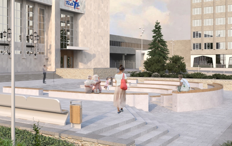 В ведение театра передали два участка земли для устройства зеленой зоны и парковки. У театра появится четвертая сцена – уличная, в виде амфитеатра. Существенно изменится ландшафт. Проект включает детскую площадку, игровой комплекс, сквер с лавочками, подобраны зеленые насаждения – березы, липы, орешник, калина, несколько видов сирени, боярышник, карликовые сосны, травы, цветы. Сквер оборудуют системой автополива, а всю площадь – системой видеонаблюдения, интегрированной в «Безопасный город». Некоторые ели пришлось снести, что вызвало тревогу горожан. Константин Геннадьевич Кириллов пояснил, что убрали больные деревья, на каждое из них составлялся акт обследования. Была попытка провести лечение елей, но специалисты не дали гарантий, а стоимость всего комплекса процедур немалая – от 120 тыс. до 190 тыс. рублей за одно дерево. Поэтому приняли решение в пользу обновления растительного состава. Ели, которые чувствуют себя нормально, останутся на прежнем месте.