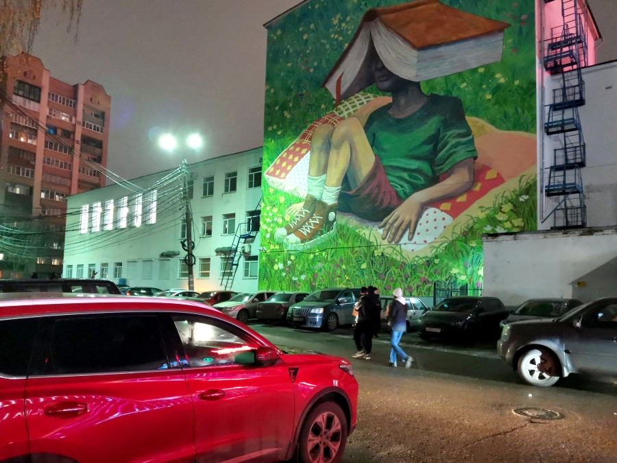 Создание муралов – тоже часть креативной индустрии, напомнил губернатор Павел Малков. На снимке: один из образцов монументальной живописи на здании МКЦ в Рязани.