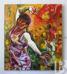 Живопись московской художницы – колоритная смесь реализма и модернизма. Собственно, о колоритности начинаешь размышлять еще на входе в зал областного художественного музея. На одной стене сгруппированы шесть полотен – полиптих «Арбузы». Автор сгущает краски и контрасты, и через невинный сюжет – поедание сладкого плода в семейном кругу – проступают чуть ли не мотивы древних священных ритуалов… Впрочем, все это ирония и гротеск, которые превращают мужчину над тарелкой арбузных долек в персонажа фильма ужасов. Художник не пугает зрителя – лишь показывает, насколько увлеченным, до исступления, можно быть в разные моменты жизни.