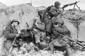 Но благодаря героизму и мужеству советских солдат удавалось сдерживать оборону и переходить в контрнаступление. В восьмидесятые годы, говоря о тех событиях, отец вспоминал: «У нас на участке в марте – апреле артиллерия практически молчала. Артиллеристы имели в запасе три-четыре снаряда и берегли их на случай вражеской атаки. А мы наступали: я со своим пулеметом, бойцы – с винтовками. Танки, которые нас поддерживали, тут же выводились из строя вражеской артиллерией. Пехота находилась под непрерывным пулеметным огнем. В первом же бою мы оставили на поле боя треть роты… У нас не было даже окопов. Из-за весенней распутицы было плохо с продовольствием: бывало, на день лишь по два сухаря доставалось. Начался голод. Он буквально истощал людей: изможденный солдат уже не мог рыть мерзлую землю. Мы ели убитых лошадей. Когда растаял снег, искали полусгнившую картошку в буртах или на колхозных полях и готовили из нее что-то похожее на кисель.