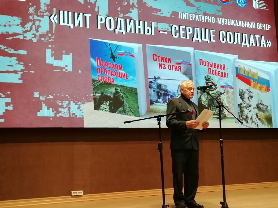 Вечер состоялся в областной библиотеке имени Горького в преддверии Дня защитника Отечества. Татьяна Бочарова, приветствуя гостей, подчеркнула: «У нас всех, членов рязанского отделения Союза писателей России, есть стихи, очерки, проза на военную тему. Нами выпущено много книг, посвященных и Великой Отечественной войне, и специальной военной операции». Она отметила, что члены рязанского отделения приняли участие в составлении общероссийских коллективных сборников: «Стихи из огня», «ПоZыVной – Победа!», «Оберег» и др. Вышли в свет книги Ольги Козловцевой, Андрея Пронина, Нурислана Ибрагимова, Владимира Хомякова, Сергея Панферова. Готовится к изданию коллективный сборник стихотворений, посвященный специальной военной операции.