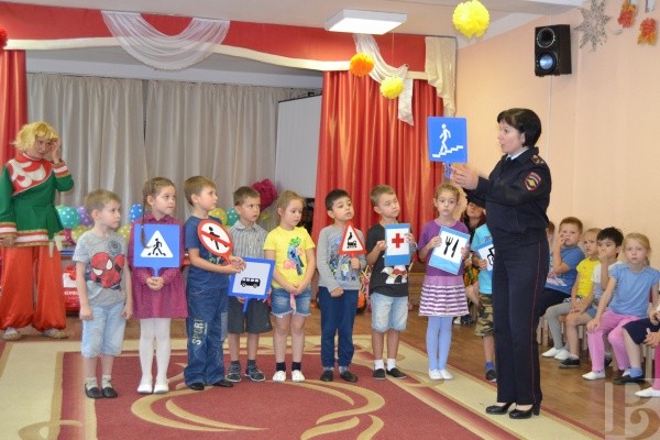 Сказочные персонажи вместе с полицейскими рассказали маленьким участникам дорожного движения о том, как следует себя вести вблизи проезжей части. Дети изучили дорожные знаки и разметку, повторили сигналы светофора и правила безопасного перехода проезжей части.