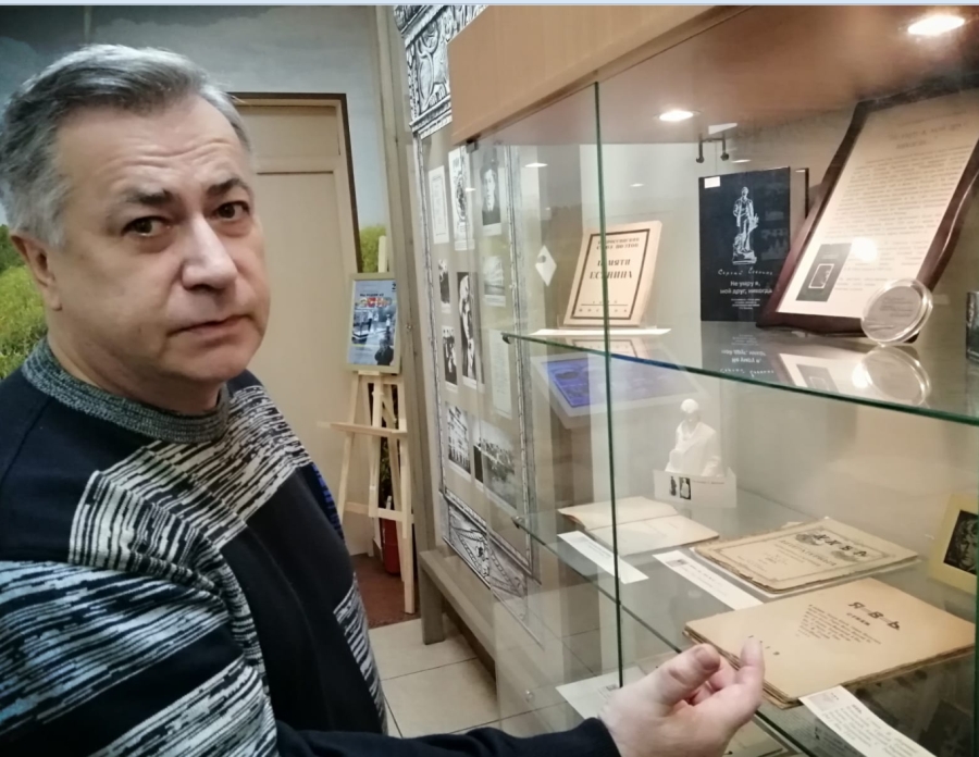 Сергей Трифонов, член общества «Радуница», библиофил, коллекционер, создатель сайта esenin.ru, представил собравшимся свою книгу «Есениниана в миниатюрных изданиях», в которой представлена краткая история появления этих уникальных книг в нашей стране, рассказывается о некоторых издателях и представлена библиография порядка 250 изданий. Сергей Иванович провел небольшой экскурс по своей выставке есенинских книг, знаков, почтовых конвертов, представленных в библиотеке.