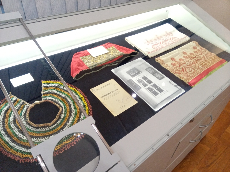 Два года старший научный сотрудник научно-фондового отдела музея Анна Дульнева занималась исследованием архивных и вещественных источников из фондов музея-заповедника «Рязанский кремль» и Государственного архива области. В фонды музея еще в 1926 году была передана часть собрания исторических образцов (120 экспонатов) Мариинской школы. Зритель увидит 40 из них. По этнографической принадлежности они подразделяются на русский, финно-угорский, татарский. Под стеклом, например, поясное полотенце (марийцы), южнорусское женское шейно-нагрудное украшение ожерелок из XIX века, «сорока» из Пензенской губернии, женское украшение «сюльгамо» (мордва-эрзя), татарские туфли и женский головной убор «тастэр». Конечно, в советской стране школу кружевниц много раз реформировали, пока в 1932 году не появилась вместо нее Рязанская школа фабрично-заводского ученичества по кружевному, вышивальному и швейному производству. Новое учреждение полностью утратило свой художественный профиль. Однако влияние Мариинской школы на уровень художественных промыслов Рязани значительно. Достаточно взглянуть и сравнить, например, старинные образцы вышивки и более позднего, советского времени, – сходство и одновременно развитие традиций налицо. Яркий след искусства Мариинской школы кружевниц проявляется в работах известных рязанских художников декоративно-прикладного искусства Елены Грабовниковой и Валентины Грумковой.