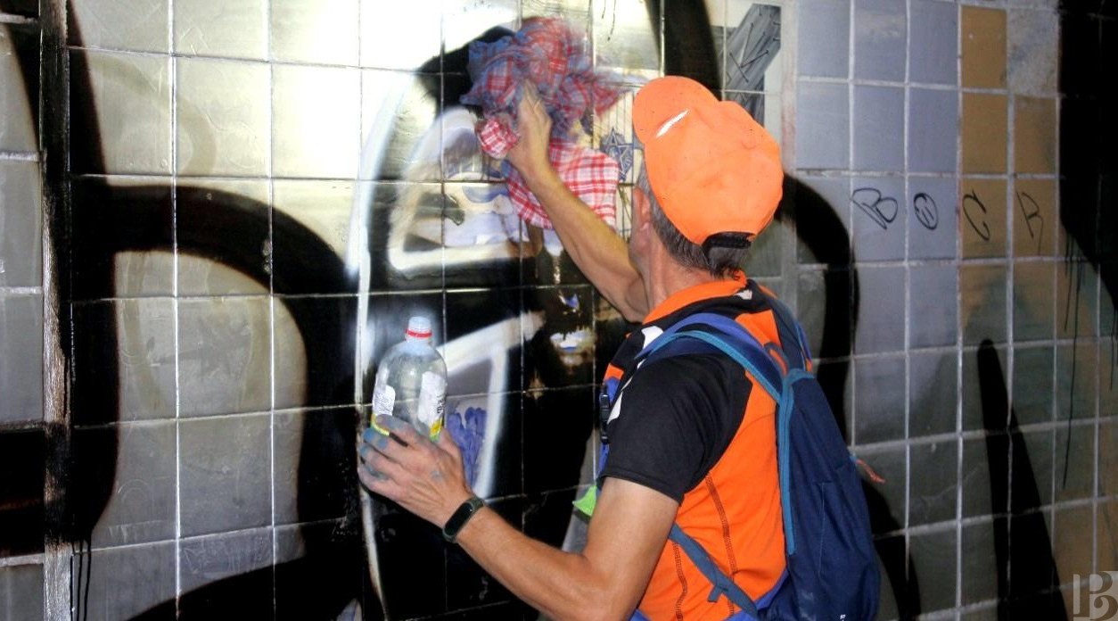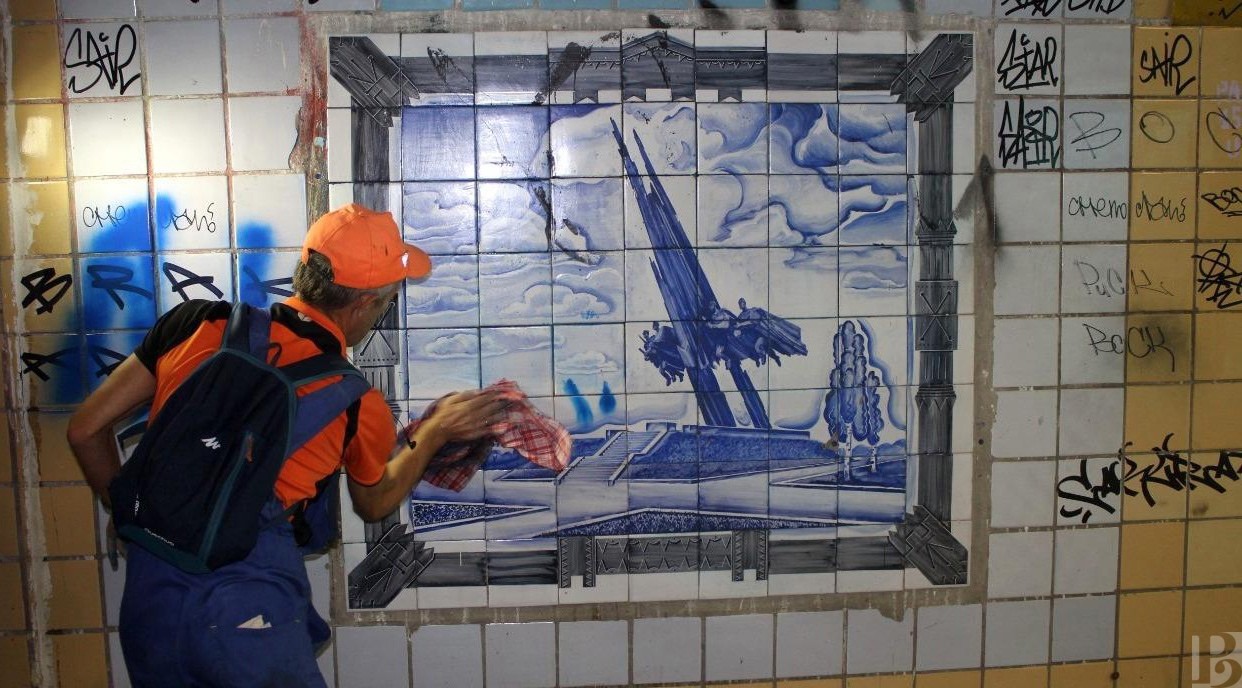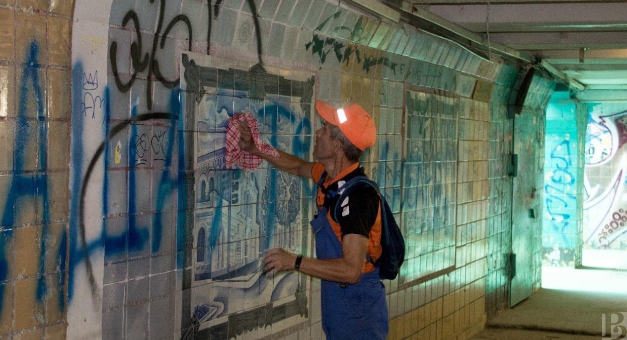 17 августа в подземном пешеходном переходе на остановке общественного транспорта ТД «Барс» отчистили от краски плитку с видами Рязани, которая в очередной раз пострадала от действий вандалов.