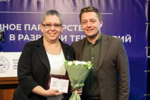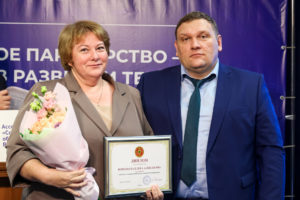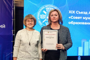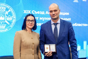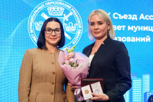 С приветственным словом к делегатам съезда обратилась и вручила знаки «За вклад в развитие местного самоуправления» министр территориальной политики Жанна Фомина.