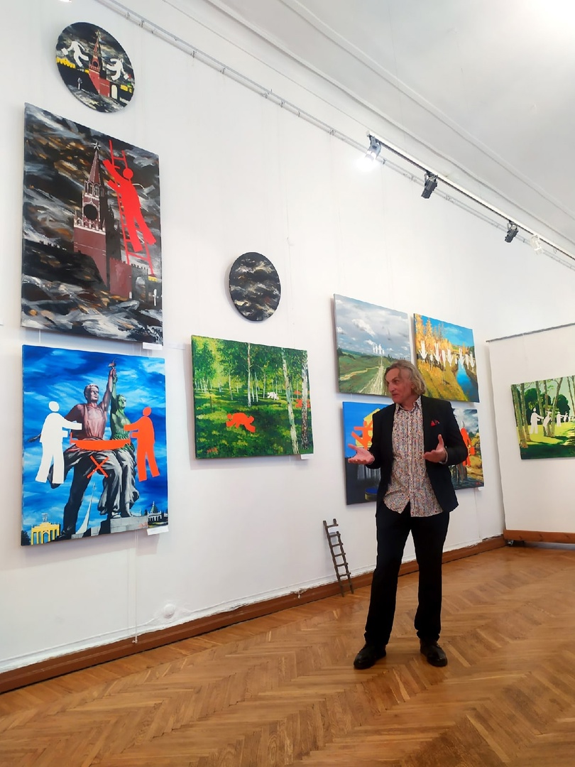 Художник устроил для гостей экскурсию по выставке и отвечал на вопросы рязанцев.