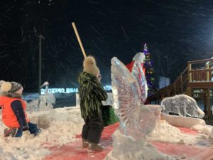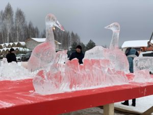Когда в том же селе Орехово недавно проходили Дни Окского заповедника, Евгений с товарищем создали целую группу ледовых скульптур животных – главных обитателей этой охраняемой природной территории.