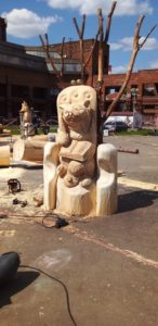 – Именно! – подхватил он. И рассказал о том, как этот мастер из здоровенного бревна сумел за три дня (а давали десять) сделать работу, которой жюри по итогам фестиваля присудило призовое место. Он закрепил это бревно вертикально, «вытащил» из корневища руки, а из них вывел цветок, лепестками которого стали взявшиеся, как в хороводе, за руки дети.