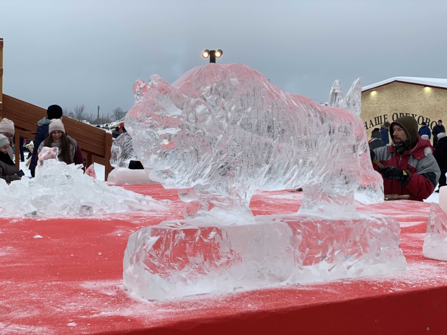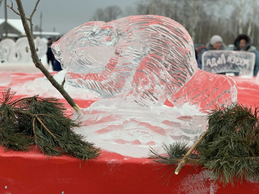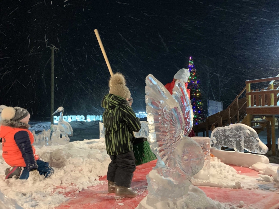Когда в том же селе Орехово недавно проходили Дни Окского заповедника, Евгений с товарищем создали целую группу ледовых скульптур животных – главных обитателей этой охраняемой природной территории.