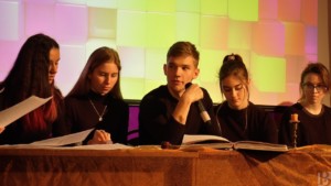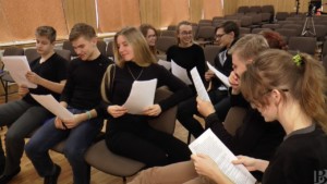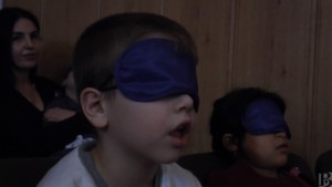 Во время спектакля артисты, одетые в черное, читали текст сказки по ролям, а звуки природы, шумы и песни героев дополняли историю. Кроме того, помощники овевали зрителей тканью, чтобы создать эффект ветра, брызгали на них водой, изображая дождь, и давали подержать в руках различные предметы из сказки – например, ореховую скорлупку Дюймовочки. Учитель-дефектолог Наталья Исайкина рассказала, что артистами в пьесе стали ученики школы, прошедшие отбор. Первыми сказку послушали ученики младших классов.