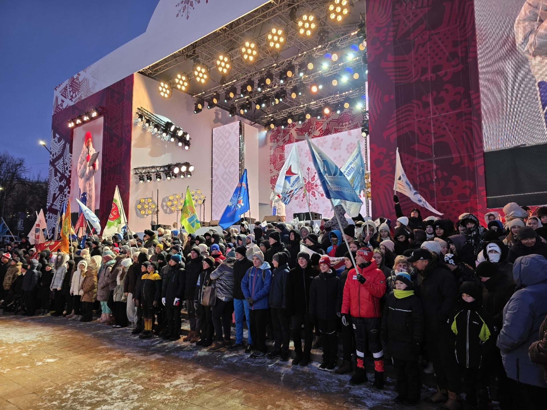 Собравшимся у сцены показали видеоролик о спортивных достижениях рязанцев в 2025 году. Число систематически занимающихся физической культурой и спортом выросло до 60%, количество завоеванных на соревнованиях различного ранга медалей превысило две тысячи, двести раз рязанцы поднимались на пьедестал почёта мирового уровня. В регионе зарегистрированы 96 спортивных федераций по различным видам спорта.