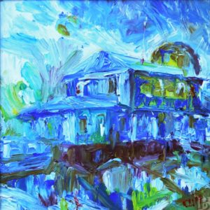 Это горячее желание исследовать мир и, в частности, рязанскую землю – лейтмотив творчества Дениса Исаева. Уроженец Тамбова, он имеет рязанские корни и часто бывает в наших краях: пишет с натуры в легендарном селе Исады, любуется Старой Рязанью, общается с единомышленниками в областном центре… Денис чувствует жизненную мощь даже там, где остальные ничего не замечают. Перенесемся в другую точку Рязани – знаменитый Остров у кремля. Сколько печали, ностальгии и в то же время силы в покосившемся старом доме на картине «На острове»! Живописец показывает нам: это не просто здание, а целое скопление энергий, судеб и воспоминаний. Люди переезжают и меняют жизнь – а искусство хранит их переживания… А если мы вернемся с острова на большую землю, то поразимся вместе с художником, насколько красива пристань на реке Трубеж. В этой картине, пожалуй, наиболее полно раскрываются возможности техники «импасто» – письма неразбавленной краской. Оттенки лазури и ультрамарина положены динамичными мазками, отчего кажется, что нагретый летний воздух гудит, вода нетерпеливо плещет, а сама пристань вот-вот тоже уплывет в собственный круиз…