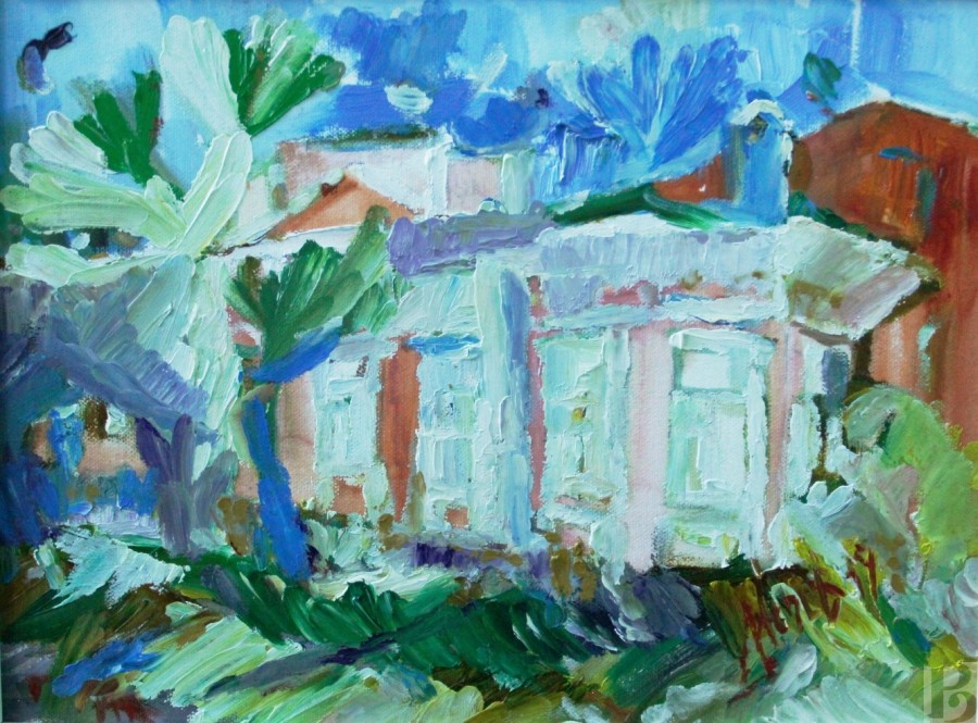 Наше путешествие начнется прямо у стен музея истории молодежного движения. Светло-розовое старинное здание имеет в реальности изящные, но довольно строгие очертания и привлекает туристов обаянием старины. Денис Исаев наводит на этот вид свою оптику и отражает на холсте собственные эмоции от визитов в музей. И все преображается: памятник архитектуры словно вибрирует в летнем воздухе, а буйная зелень деревьев и кустарников вокруг создает облик райского сада. Красноречивое название «Музей радости» показывает, сколько ярких впечатлений может получить человек от знакомства со своей историей. Главное – хотеть слушать и смотреть.