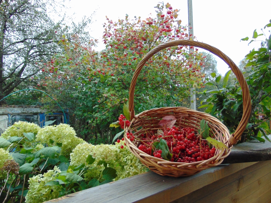 Самые вкусные и сладкие ягоды калины собирают после первых заморозков. Хозяйки говорят, что варенье из нее получается отменное. Калину употребляют в сезон простуд, поскольку она богата витамином С. Но тем, кто страдает гастритом или имеет пониженное давление, употреблять ягоду нужно с осторожностью. На снимке: сбор калины красной на даче.