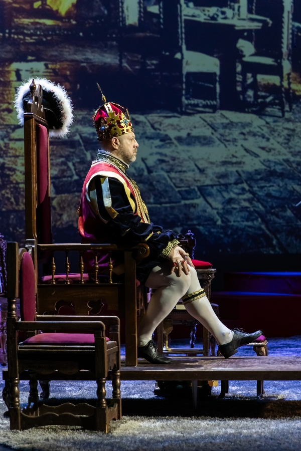 Хроника правления короля Англии Генриха VIII («Монарх») представлена как путь внутренних изменений человека, наделённого абсолютной властью. Такова изначальная установка режиссёра. «Меня не интересует власть. Мне интересен человек, наделённый ею», – сказал перед началом гастролей в беседе с рязанскими журналистами о своей работе режиссёр спектакля, художественный руководитель театра Игорь Лысов.
