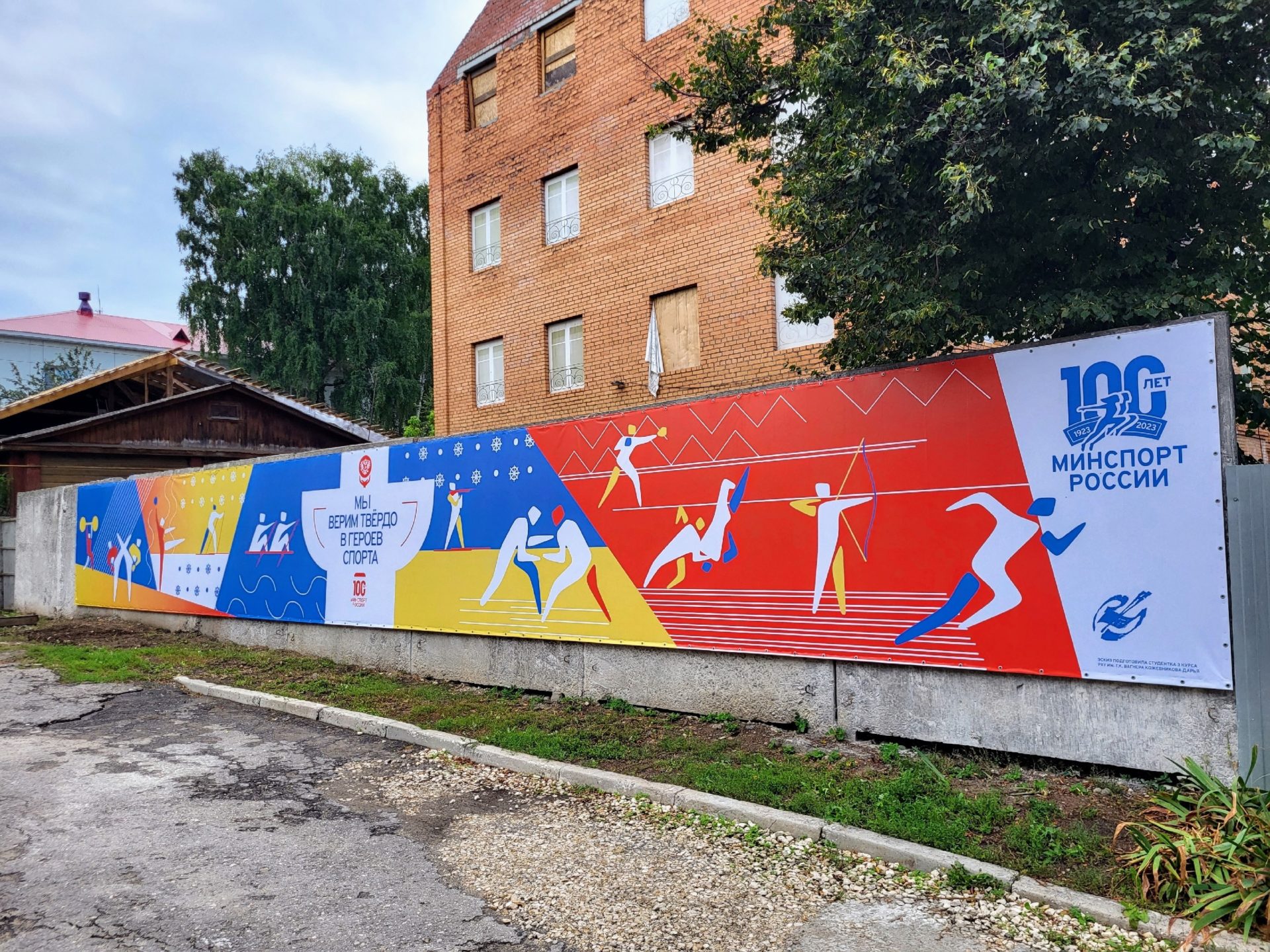 Забор вначале хотели покрасить, чтобы хоть как-то обновить, но Наталья Попова переубедила коллег и предложила разместить на заборе баннер размером 17 х 2 метров. Для разработки дизайна ЦСП обратился к директору РХУ имени Г.К.Вагнера Василию Колдину и заместителю директора по воспитательной работе Марине Дудкиной. У третьекурсников как раз в это время была практика. Заказ поручили Дарье Кожевниковой.