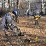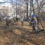 На работы по опиловке старых деревьев, вырубке сухих кустарников и очистке территории больницы от мусора выходит до 25 работников РНПК, задействуется заводская спецтехника: погрузчик, два самосвала, измельчитель древесных отходов на базе трактора.