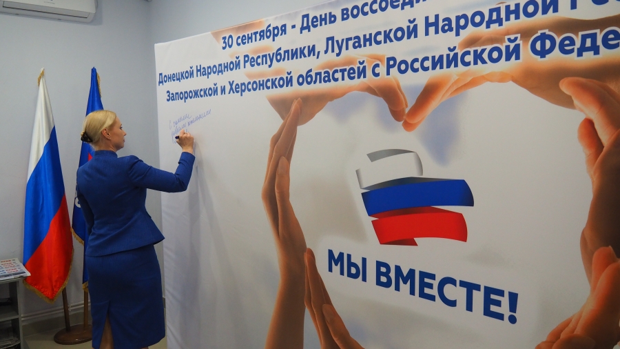 Шефская помощь рязанского региона над Каховским районом Херсонской области многогранна. Идет восстановление тринадцати важных объектов социальной сферы, включая детские сады, школы, МФЦ. В районы, подвергающиеся обстрелам, доставляются строительные материалы. О поддержке новых регионов РФ рассказала рязанским студентам первый заместитель председателя правительства области Анна Рослякова на встрече, посвящённой годовщине воссоединения Донецкой, Луганской народных республик, Запорожской и Херсонской областей с Россией. Участники встречи оставили свои пожелания жителям Донбасса на баннере фотовыставки «Год вместе» (0+), открывшейся в штабе общественной поддержки «Единой России».