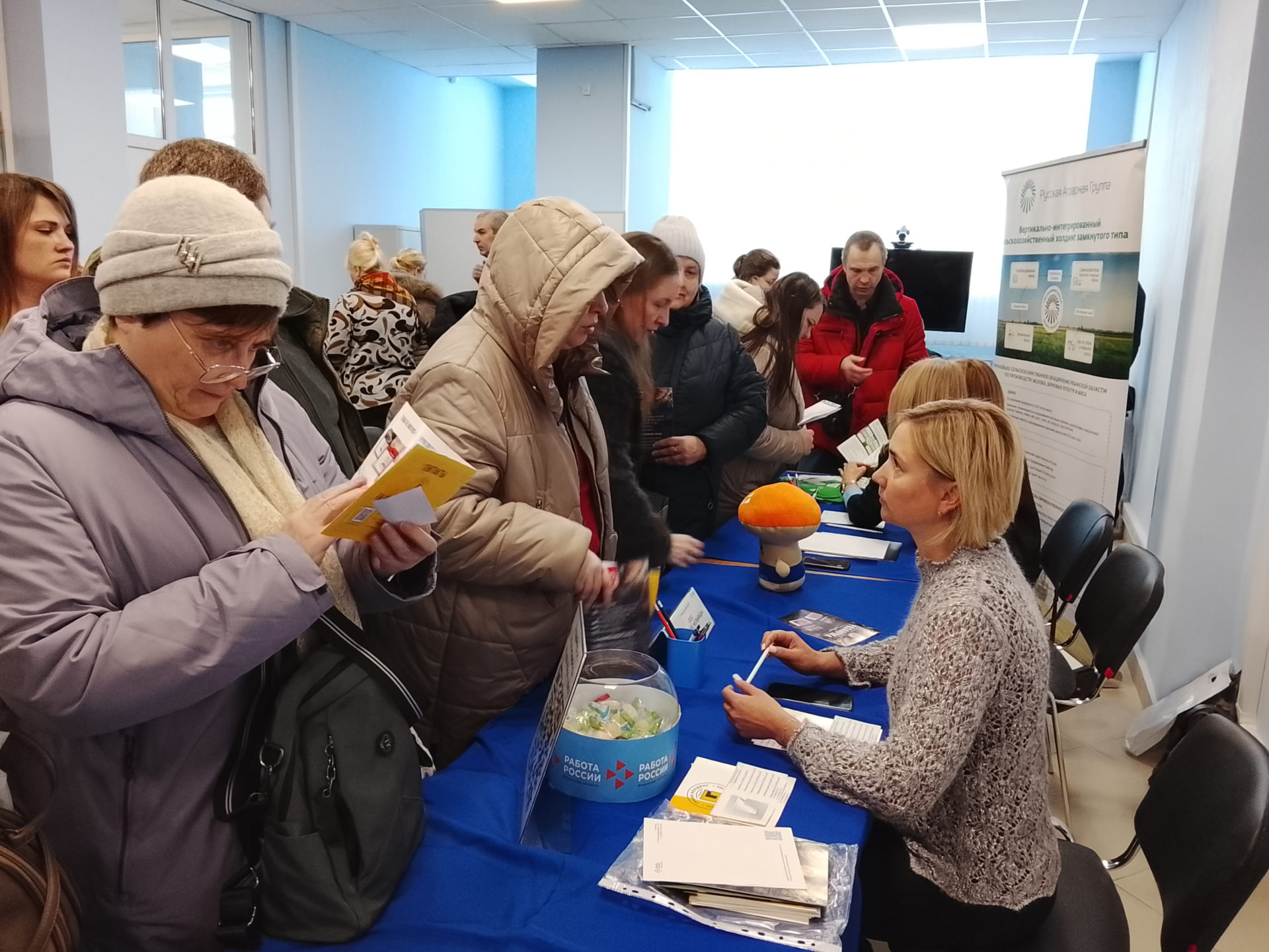 В Кадровом центре Рязанской области провели ярмарку вакансий для жителей региона. Свои предложения представили три работодателя: ООО «Русская Аграрная Группа», ООО «Русские мельницы» и ООО «Русский хлеб». Ярмарку посетили 99 соискателей, которым представили более 100 вакансий. Среди предложенных специальностей: руководитель кадрового центра, инженер-технолог, главный энергетик, главный агроном, водитель, пекарь и другие. Средняя предлагаемая заработная плата составила около 60 тысяч рублей.