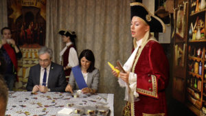 Посетителей приветствовали экскурсоводы, одетые в парадные костюмы петровского времени. Они рассказали, что будущий император впервые в жизни попробовал именно рязанские «конфекты»: фруктовые цукаты привозила из Рыбновского района, своих родных мест, царица Наталья Кирилловна. Кроме того, согласно легендам, Петр I был и первым русским человеком, попробовавшим шоколадные конфеты. Его угощал юный Людовик XV, которого император назвал «шоко руа» – «шоколадный король».