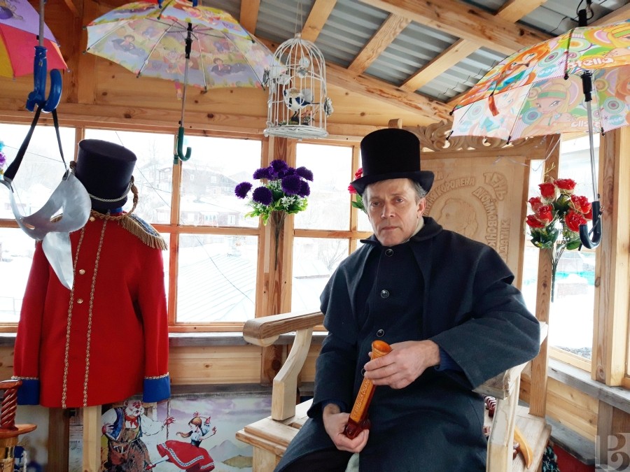 Все в музее – творение рук хозяина. Мемориальная доска на узорчатых воротах, витрина со старинными вещицами в стене и резная деревянная беседка с зонтиками Оле-Лукойе, троном Голого короля, мундиром Стойкого оловянного солдатика… А на полу красуются длинные башмаки-скороходы: встань в них, загадай желание, досчитай до десяти – и вернешься в сказку. Кажется, из Касимова она и не уходит…