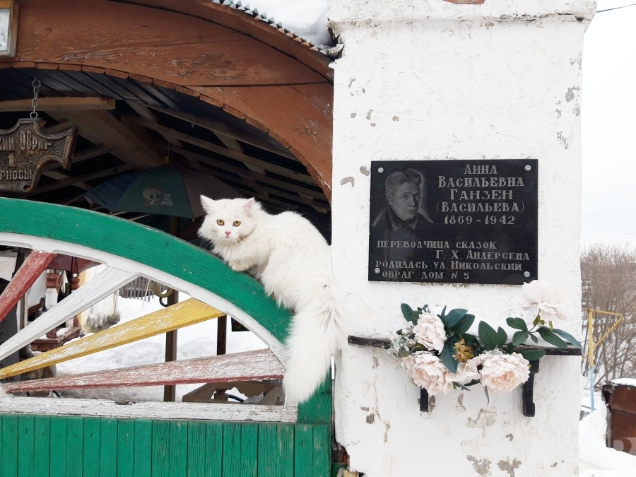 Дом №1 по улице Никольский овраг включен во многие путеводители. Именно здесь был дом Анны Ганзен, а сейчас тут живет краевед Анатолий Смирнов. Узнав когда-то, что за земля досталась ему в наследство, он превратил двор в музей сказок Андерсена. Да что уж там – сам стал волшебником в цилиндре, которого знают и местные жители, и туристы. Краеведа уже ждут на празднике в детской библиотеке, где он сыграет роль проводника в чудесные миры.