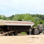 Во время испытаний транспортер успешно прошел по запланированному маршруту и преодолел водную преграду.