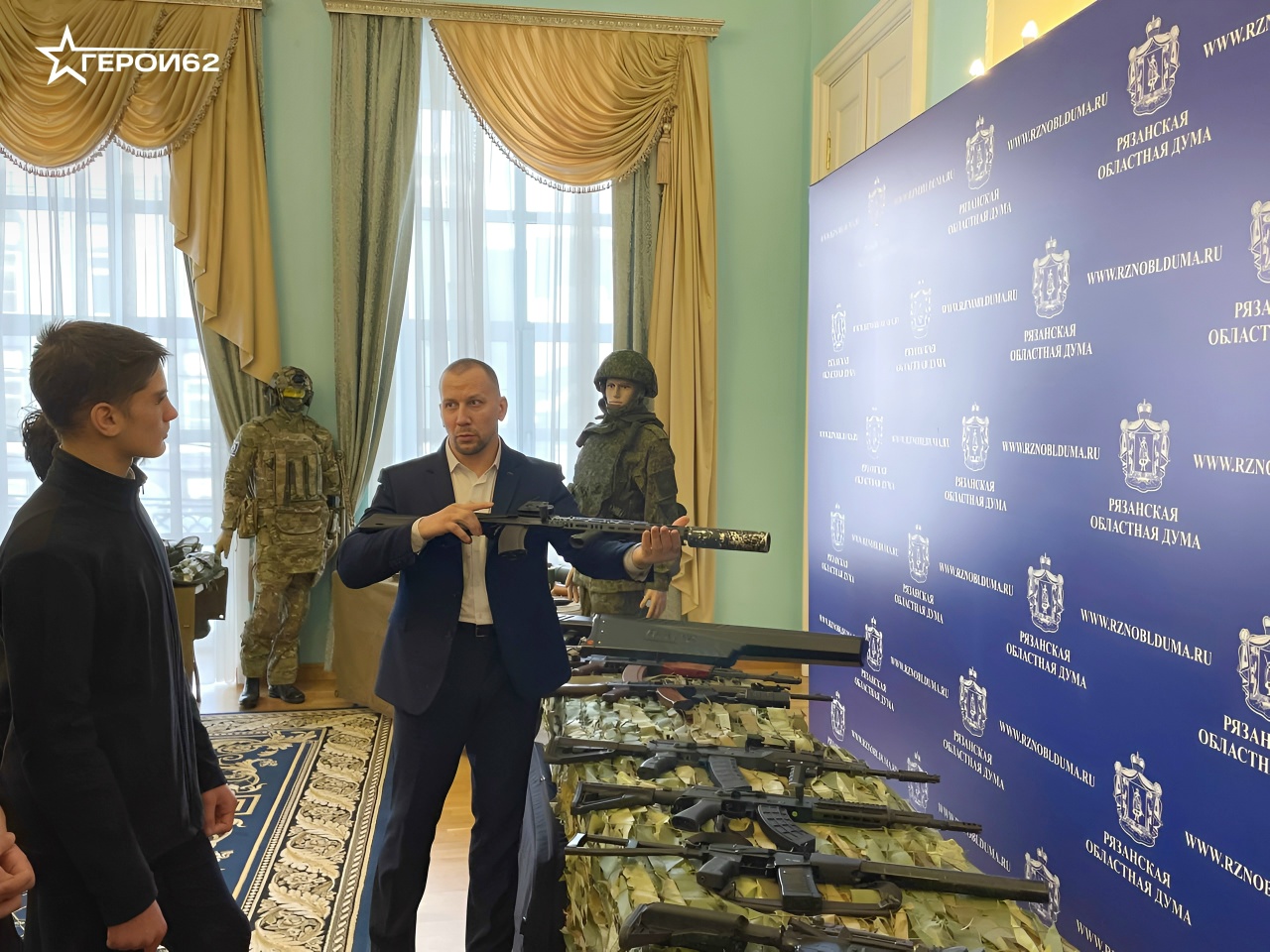 Их для рязанских школьников проводят участник проекта «ГЕРОИ62» Роман Денисов и депутат областной Думы Максим Давыдов. Экспозиция, подготовленная Центром военно-патриотического воспитания «Гранит», позволяет прикоснуться к современным технологиям защиты Родины.