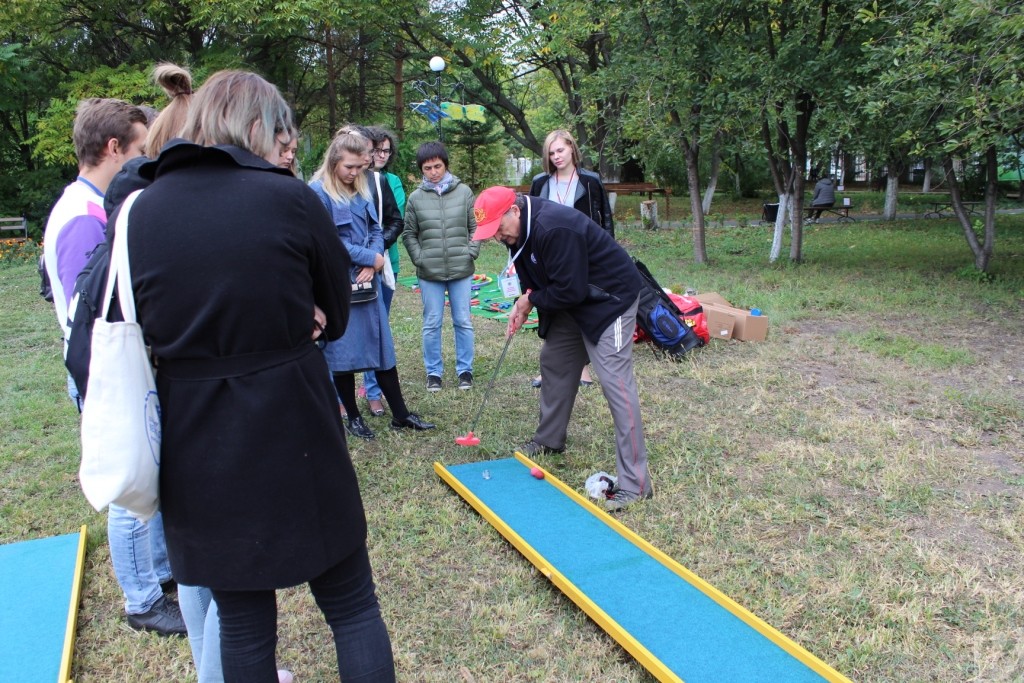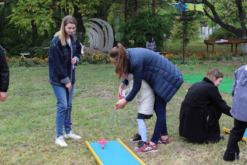 Полученные знания волонтёры смогли отработать на практике. Для обучающихся школы №71 и Центра образования «Дистанционные технологии» они провели соревнования по мини-гольфу, подвижные игры на свежем воздухе и экскурсии по экологическим тропам.