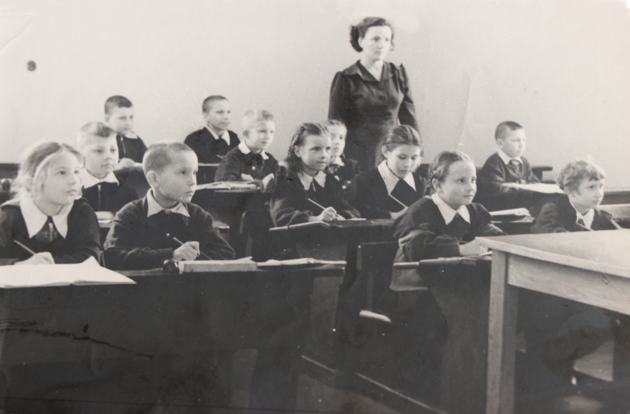 Собеседница показывает старые снимки: «Это мама моя – Александра Васильевна, а в военной гимнастёрке папа – Василий Петрович, мы по фамилии Светловы. Это снимок отец прислал с фронта. Он вернулся живой. Думаю, судьба сохранила. А это наш первый школьный выпуск 10-го класса, 1945 год. Учителя, одноклассники. А это я. Узнаёте? Вот – крайняя справа… Когда мы начинали учиться, нас было 25 человек, а из школы выпустились пятеро. Из девятого и десятого класса в армию постепенно призывали наших парней – ни один из них не вернулся. Из села были призваны и 20 девчат. Вот на фото наш военрук Виктор Александрович Кукушкин, физик Анна Тимофеевна Аверина, директор школы Дмитрий Тимофеевич Диденко, наш классный руководитель – литератор Анна Ивановна Игошина».