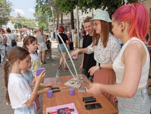 Фестиваль «Читающая улица Почтовая» был организован как одна большая семейная игра-бродилка. Она была посвящена хобби и увлечениям. Свои площадки организовали Рязанский историко-архитектурный музей-заповедник, волонтеры рязанских вузов. Мальчишки и девчонки с удовольствием примеряли одежды первобытных людей из шкур и меха. Могли почувствовать себя настоящими кладоискателями. Делали бумажные кораблики и лепили зверюшек из пластилина. Учились плести из бисера. Играли в настольные игры. Соревновались в ловкости на «резиночках» и прыгали со скакалками.