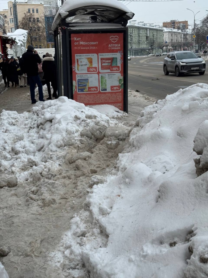 Жалобы поступают и на сугробы в центре Рязани: «Остановка общественного транспорта «ЦПКиО» нечищена. Отвалы с дороги такие, что войти в транспорт невозможно. Люди падают под троллейбусы и автобусы. Где дворники?»