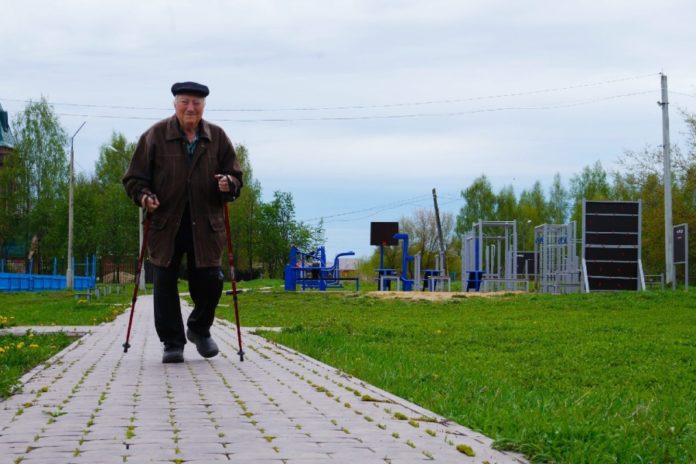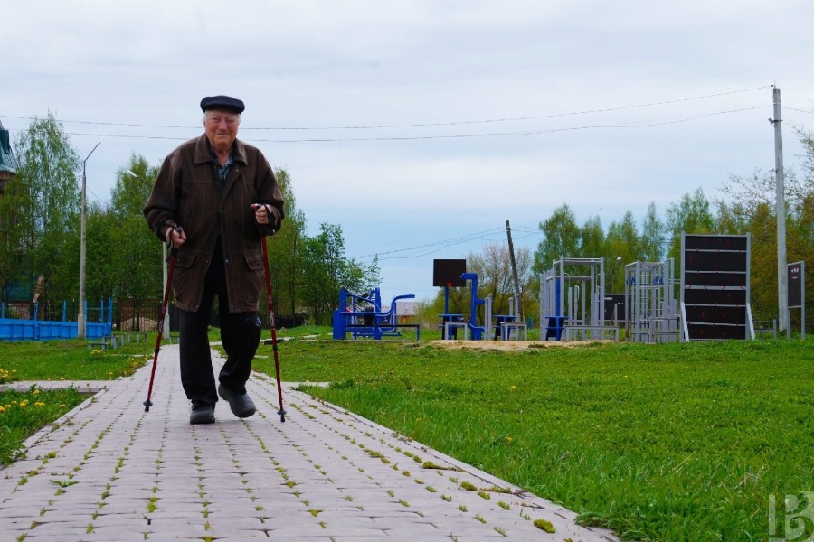 Как пояснил глава администрации района Михаил Ромодин, и уже созданные в райцентре объекты спортивной инфраструктуры, и те, которые пока в планах, чрезвычайно востребованы местными жителями. Молодежи, которая активно занимается спортом (в частности, футболом и тяжелой атлетикой), необходимы для этого новые условия, поэтому идет речь о строительстве ФОКа. Не отстает и старшее поколение – у людей пенсионного возраста особой популярностью пользуется новая площадка с уличными тренажерами. А некоторые предпочитают заниматься в Алексеевском парке скандинавской ходьбой. Как, например, 86-летий пенсионер, в недавнем прошлом председатель местного совета ветеранов Евгений Алексеевич Васин (на фото слева). Два года назад он освоил ходьбу с палками и с тех пор регулярно тренируется в Алексеевском парке. Здесь же пенсионер занимается на уличных тренажерах, говорит, что такие занятия помогают сохранить подвижность в суставах.