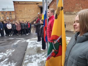 Право поднять на линейке флаги России, Рязанской области и города Рязани было предоставлено лучшим учащимся школы Евгению Бурсикову, Арине Удачиной и Анастасии Лебединской.