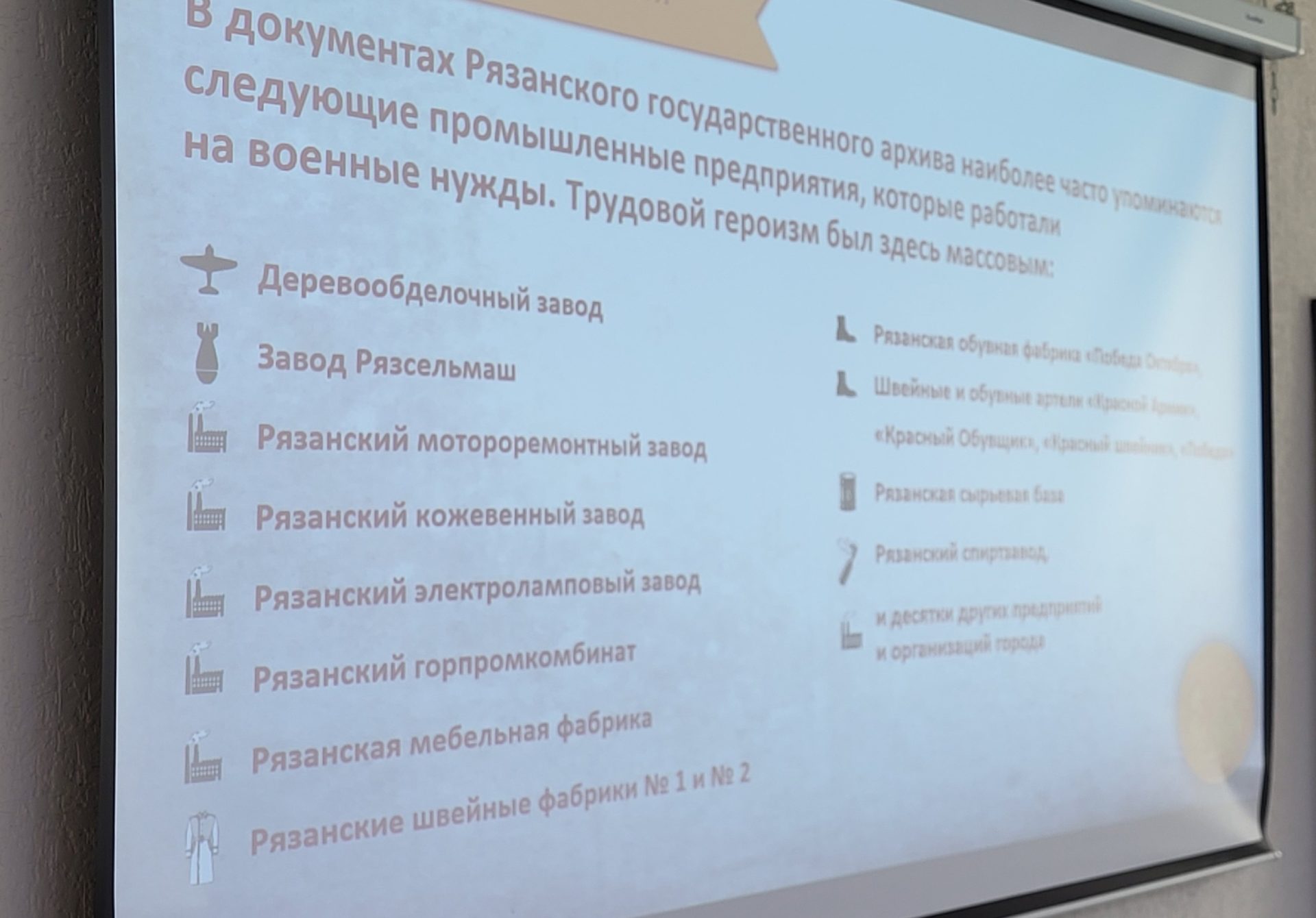 – Проект направлен, прежде всего, на молодёжь, которая должна знать, что трудовая Рязань в годы Великой Отечественной войны сделала огромный вклад в победу. О том, каким был этот вклад, мы будем рассказывать молодым людям на наших встречах, – говорит София Москвитина.