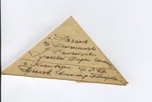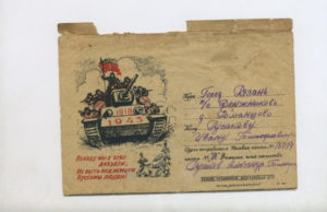 Сообщаю, что я еще нахожусь в госпитале. Чувствую себя хорошо. Рука моя в кулак не сжимается, зябнет, но скоро должна разработаться. Сила в ней ежедневно прибавляется. Скоро поеду с новой силой добивать врага. Мама, я здесь сильно скучаю. Писем от вас еще не получал. Товарищ, с которым вместе приехали, уже получил ответ, а я жду от вас письмо. Мама, я сильно беспокоюсь о папане. Он, вероятно, уже выехал на фронт. Привет папане, всем родным и знакомым. До свидания, целую. Ваш сын, лейтенант Александр Русаков.